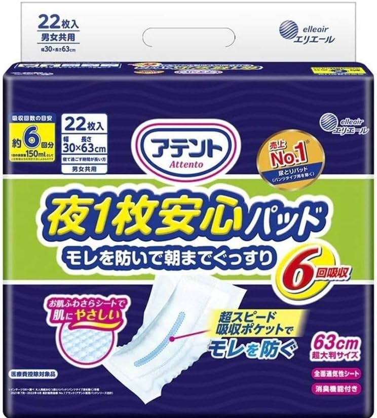 https://amzn.to/4qn6M39アテント 夜1枚安心パッド モレを防いで朝までぐっすり 6回吸収 66枚(22枚×3パック)
