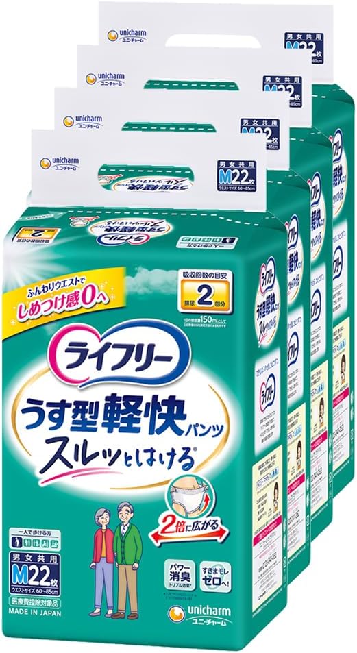 【ケース販売】 ライフリー うす型軽快パンツ 【ADL区分:一人で歩ける方】 ホワイト Mサイズ 22枚入×4パック